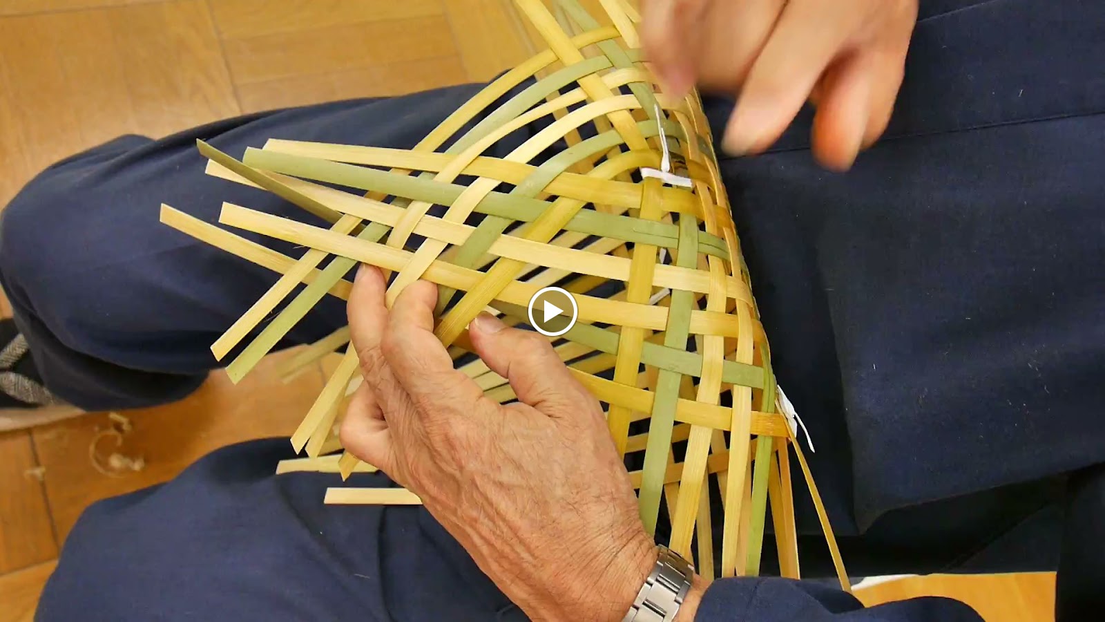 ②編んだヒゴを左右に寝かせていきます