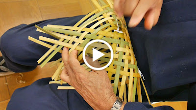 <工程> 編みヒゴつくり⇒四つ目編み⇒縁編み⇒縁巻ヒゴつくり⇒縁巻き